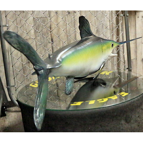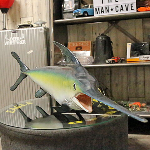 今にも獲物を狙うかのような姿を壁に掛けて楽しむことが出来ます! また、表面の塗装にヒビや、小キズなどあって、長年飾ってあったかのようなビンテージを感じる商品! レストランや、釣具店、ご自宅のガレージなどにもオススメ! アイキャッチになること間違いなし!ド迫力なメカジキオブジェです! ※本商品は塗装に「ヒビ、小キズ」また、本体の一部に「欠け」がございます。